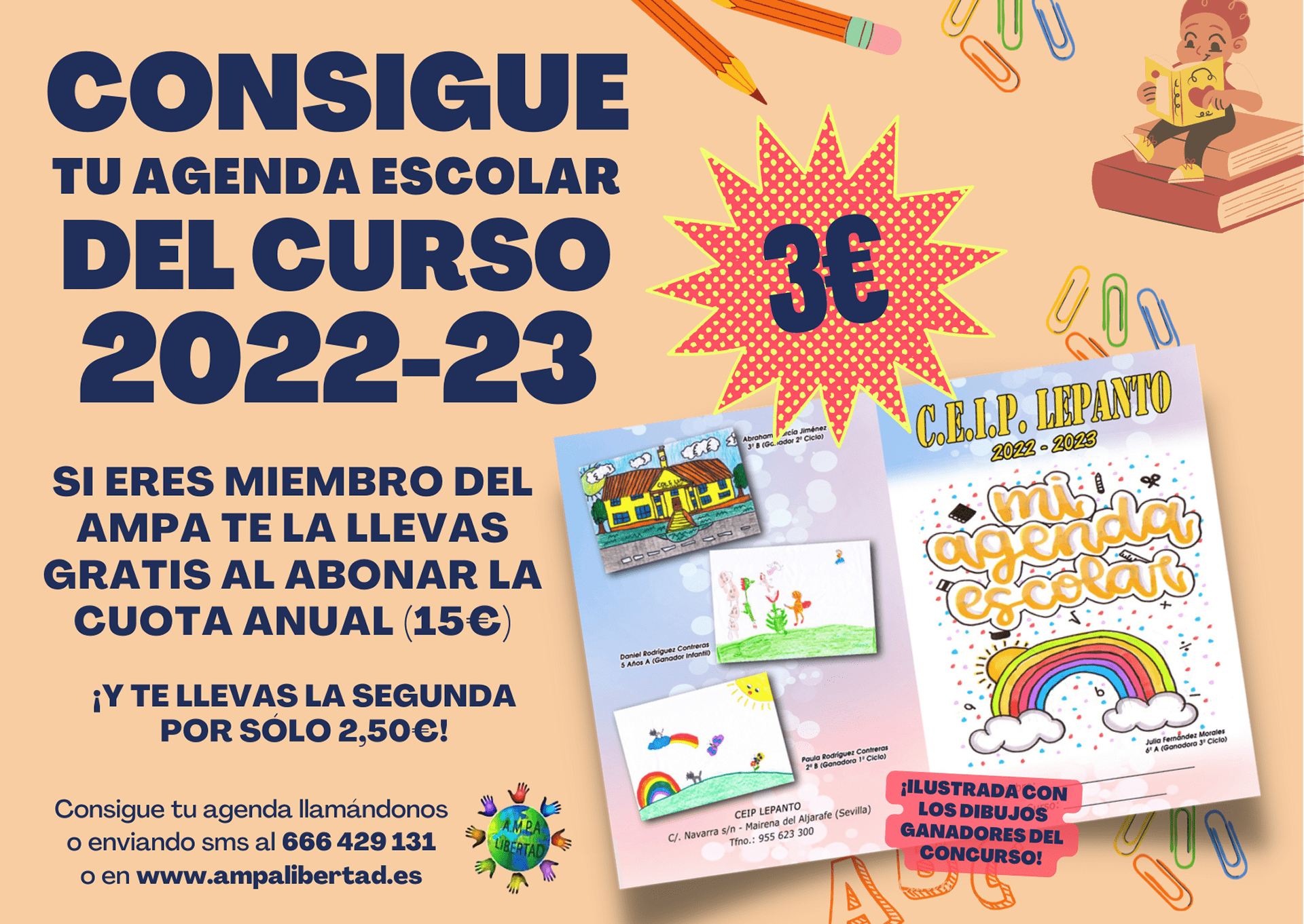 Y también puedes hacer el pago en efectivo en la oficina del AMPA. La oficina estará abierta de lunes a viernes de 9:15h. a 11:00h. (ver ubicación). Conviene no obstante confirmar previamente la disponibilidad llamando al +34 666.429.131